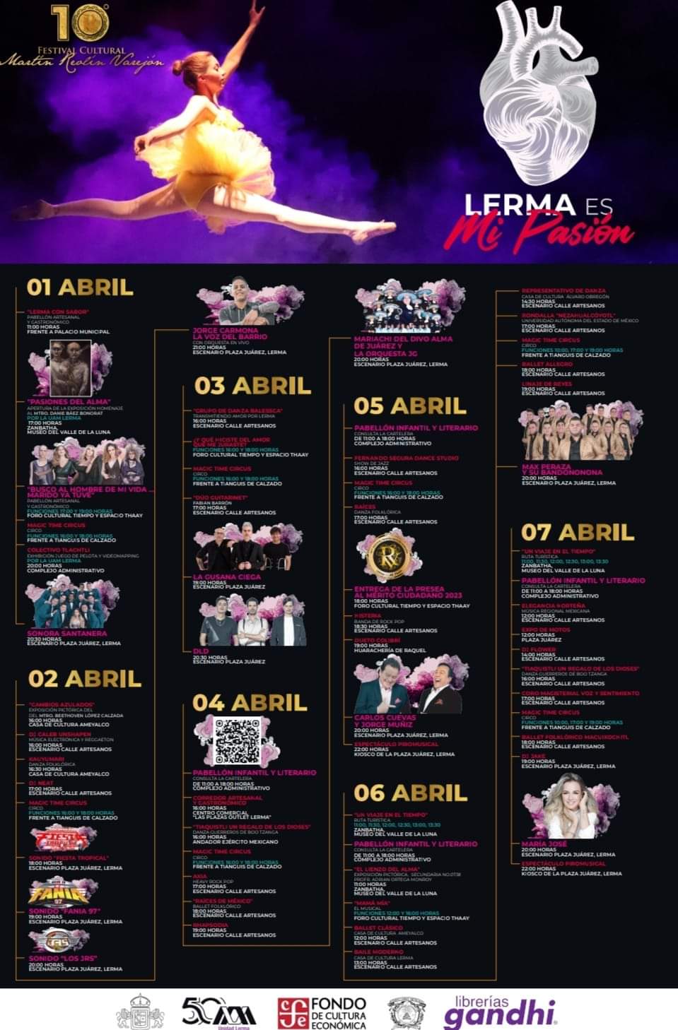 En Lerma se llevará a cabo el Festival “Martin Reolín Varejón” 2024 del 1 al 7 de abril, con más de 100 eventos culturales, gastronómicos, artesanales, literarios e incluidos los conciertos de grandes artistas; además de la obra de teatro «Busco al hombre de mi vida, marido ya tuve” y el musical “Mamma Mía” en el Foro Thaay.